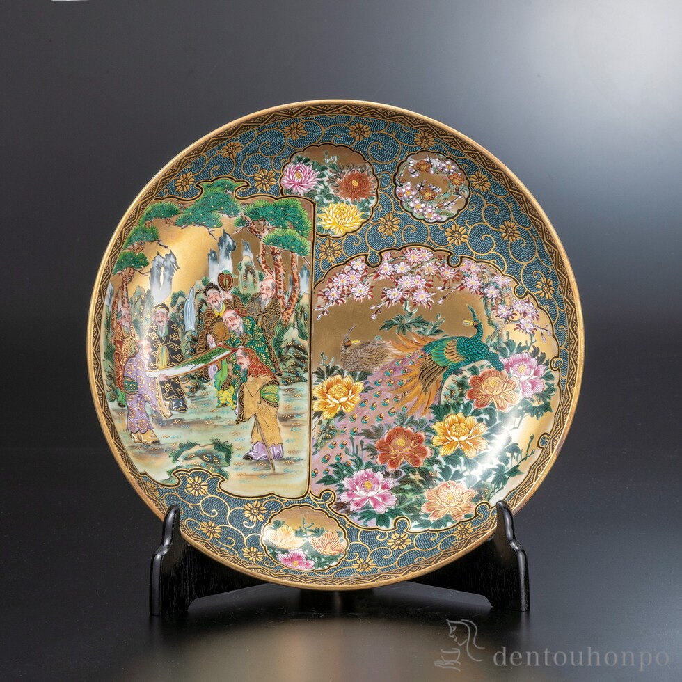サワチ飾皿 本金割取 三枚組 皿立付 ( 置物 飾皿 スタンド 絵皿 贈り物 九谷焼 結婚 出産 内祝い 引き出物 金婚式 誕生日プレゼント 還暦祝い 古希 喜寿 )