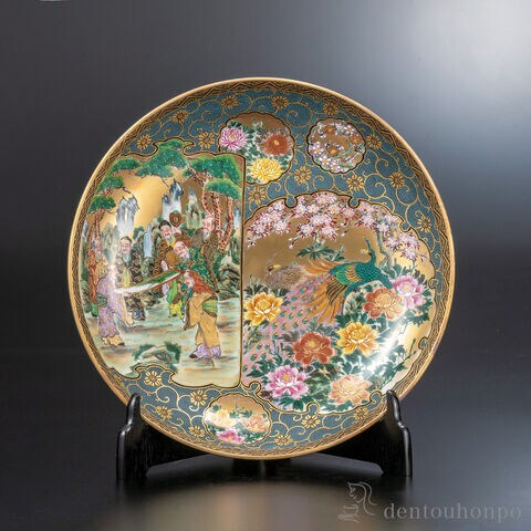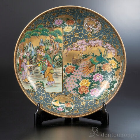 華麗に彩られた九谷焼の三枚組飾皿は、伝統と芸術の結晶。本金を用いた精緻なデザインが、時代を超えた気品を醸し出します。飾り棚やテーブルで、その存在感が空間を一層引き立て、和の美しさを体感させてくれる逸品です。専用の皿立て付きで、お部屋を格調高い雰囲気に彩ります。