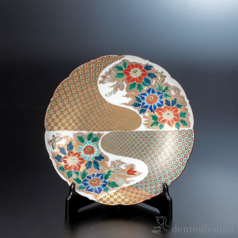 飾皿 彩色鉄仙 10号 ( 置物 飾皿 スタンド 絵皿 贈り物 九谷焼 結婚 出産 内祝い 引き出物 金婚式 誕生日プレゼント 還暦祝い 古希 喜寿 米寿 退職 定年 )