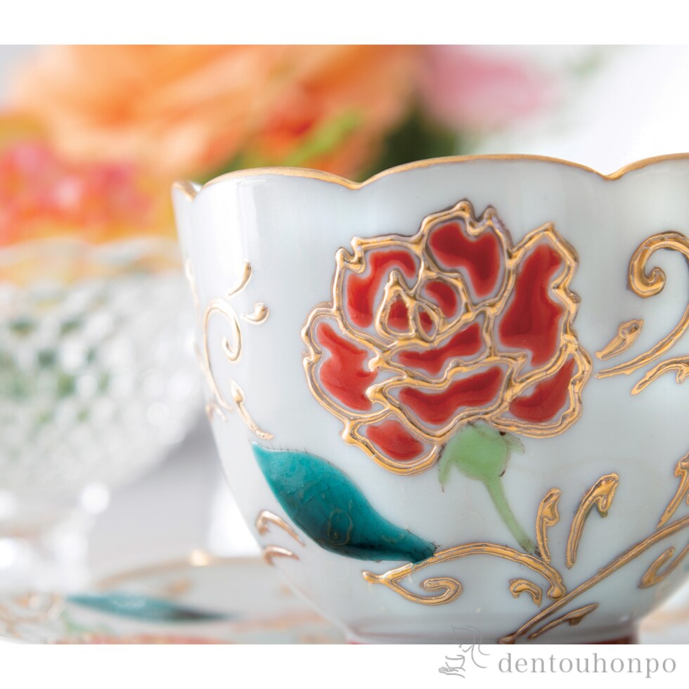 優雅さを日常に添える九谷焼の珈琲カップ&ソーサー。繊細な花結び模様が持つ精緻な美しさは、和の心を感じさせます。高品質な職人技が生む極上のひととき。特別な日の自分用にも、贈り物にも最適です。あなたの時間を、より豊かで特別なものにする一品です。