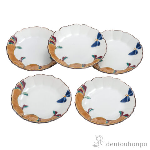 【九谷焼】 皿揃 蝶と唐草 3.2号