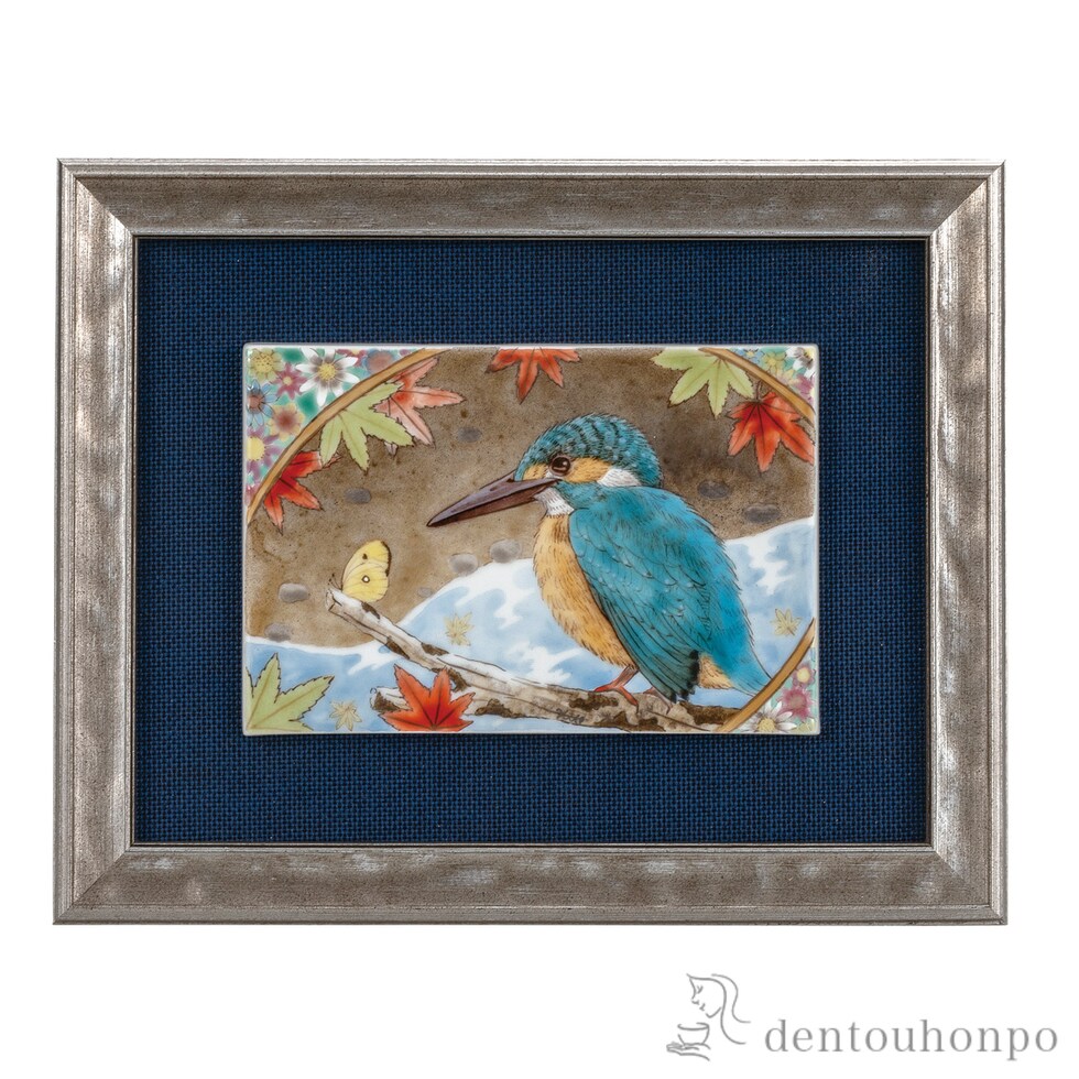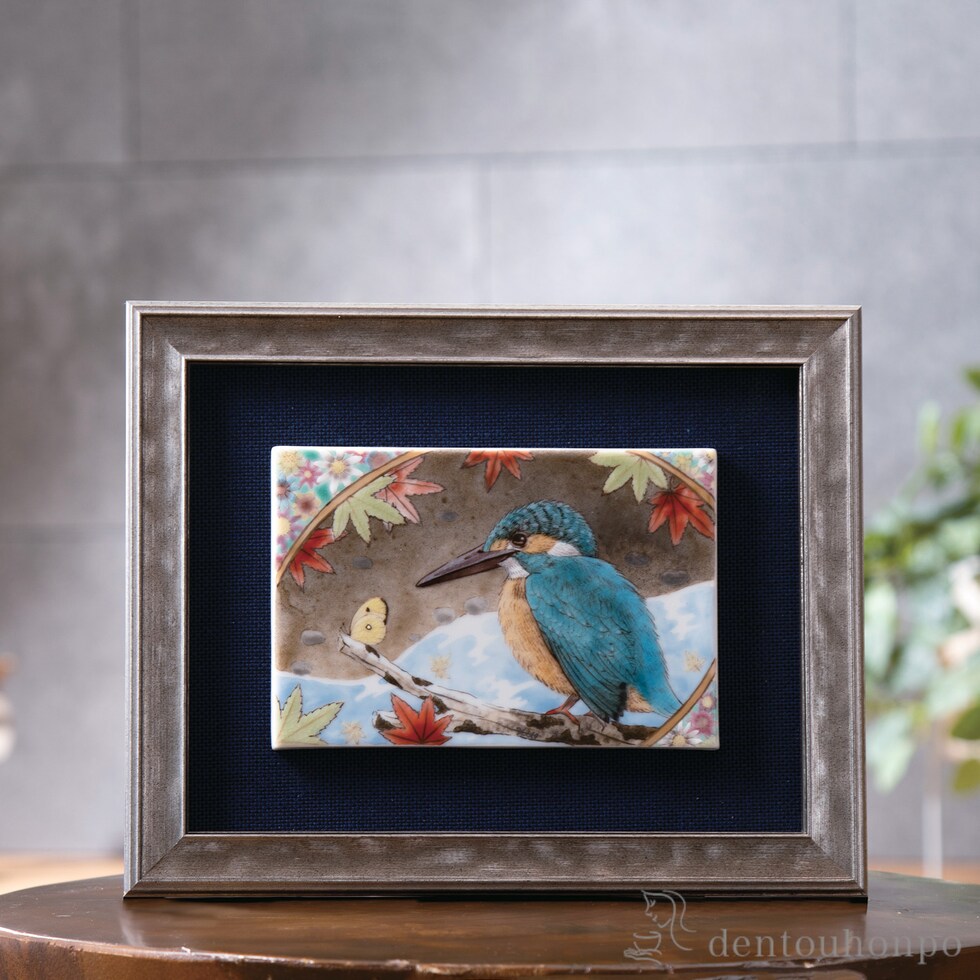 陶額 カワセミ ( 置物 額飾り 陶板 陶板画 法人 九谷焼 周年 創立 上場 竣工 開店 事務所移転 開業 プレゼント お祝い お返し お礼 令和 海外 日本 取引先 )