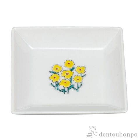 角小皿 花束 黄 3号 ( プレート 醤油皿 豆皿 和食 洋食 九谷焼 結婚 出産 内祝い 引き出物 金婚式 誕生日プレゼント 還暦祝い 古希 喜寿 米寿 退職 定年 )