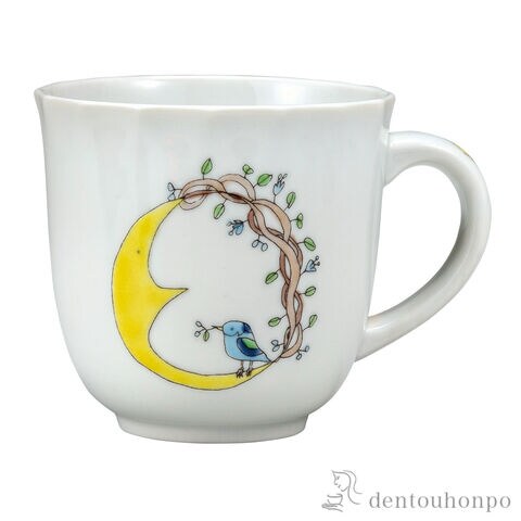 マグカップ 月と鳥 水色 ( プレゼント デザイン マグ オリジナル タンブラー 九谷焼 結婚 出産 内祝い 引き出物 金婚式 誕生日プレゼント 還暦祝い 古希 )