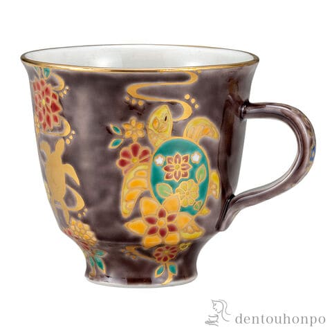 豊かな彩りと海亀の優雅なデザインが施された高級感ただよう九谷焼マグカップ。手に取るたびに伝統の巧みな技に触れ、心和むひとときを。日本の美が日常を彩ります。上質なひとときを感じられるこの一品で、特別なティータイムをお楽しみください。