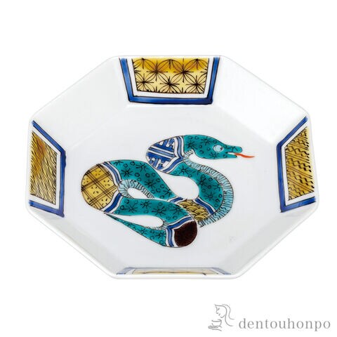8角皿 十二支 巳 5号 ( プレート 醤油皿 豆皿 和食 洋食 九谷焼 結婚 出産 内祝い 引き出物 金婚式 誕生日プレゼント 還暦祝い 古希 喜寿 米寿 退職 )