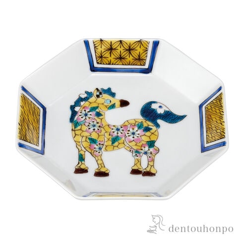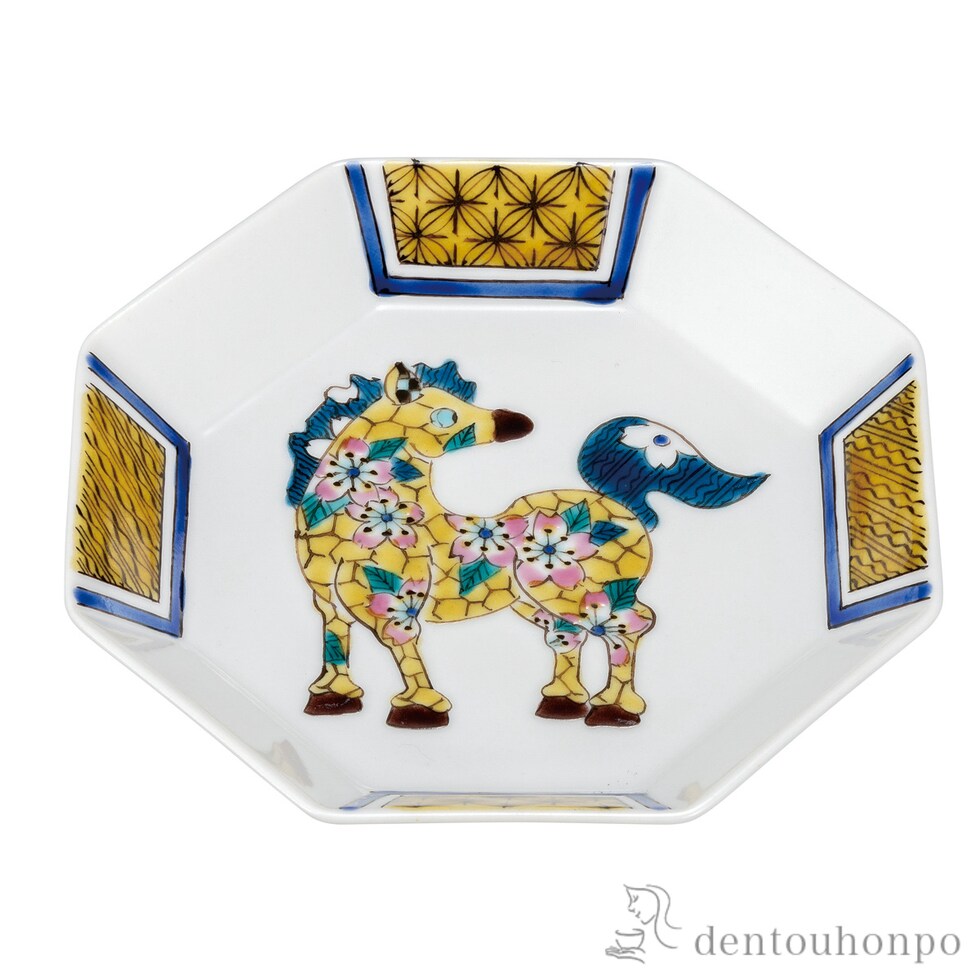 8角皿 十二支 午 5号 ( プレート 醤油皿 豆皿 和食 洋食 九谷焼 結婚 出産 内祝い 引き出物 金婚式 誕生日プレゼント 還暦祝い 古希 喜寿 米寿 退職 )