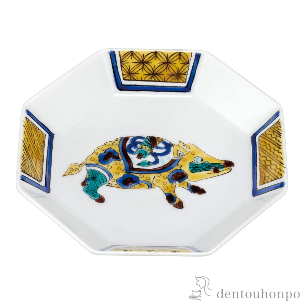8角皿 十二支 亥 5号 ( プレート 醤油皿 豆皿 和食 洋食 九谷焼 結婚 出産 内祝い 引き出物 金婚式 誕生日プレゼント 還暦祝い 古希 喜寿 米寿 退職 )