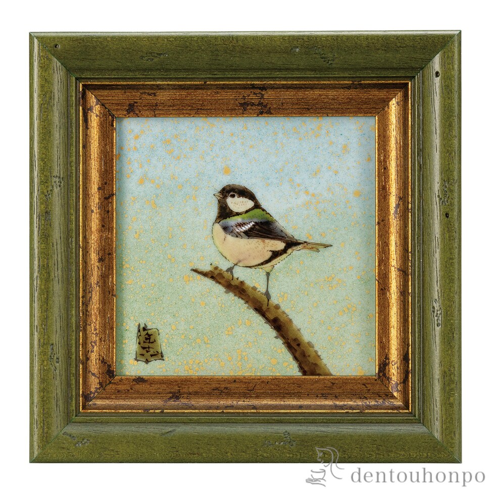 陶額 シジュウカラ ( 置物 額飾り 陶板 陶板画 法人 九谷焼 周年 創立 上場 竣工 開店 事務所移転 開業 プレゼント お祝い お返し お礼 令和 海外 )