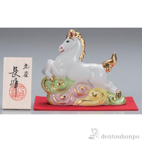 【九谷焼】 干支置物 雲のり午 盛 4.5号 敷物・立札付