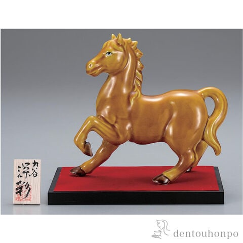【九谷焼】 干支置物 午 交趾 6.5号 台・敷物・立札付