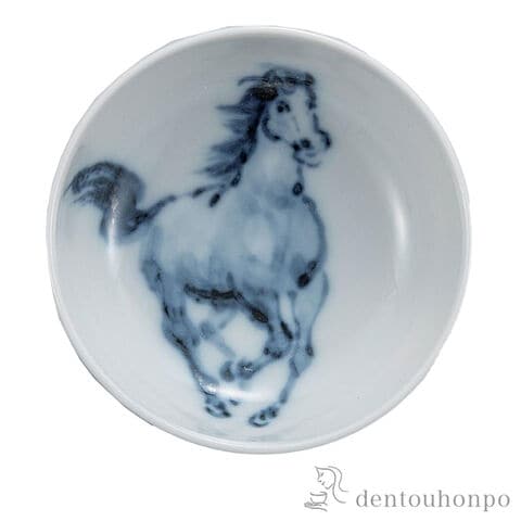 【九谷焼】 干支 盃 染付左馬
