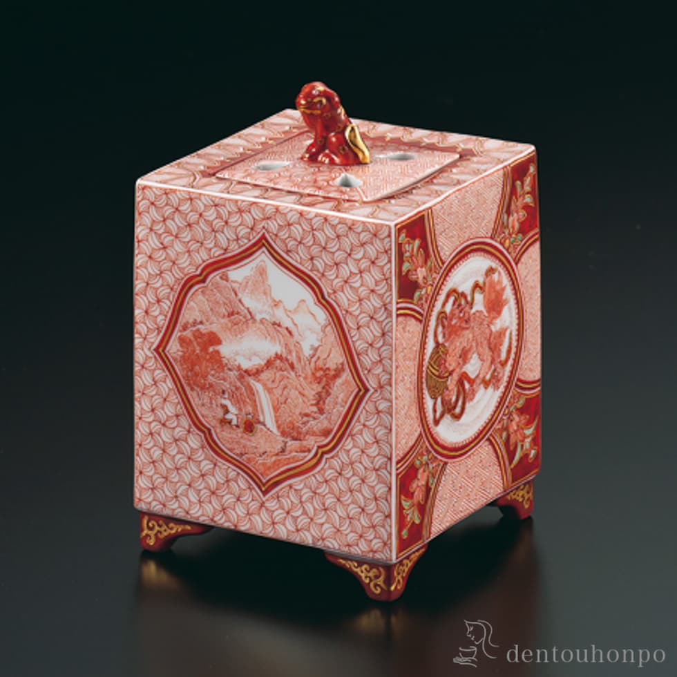 香炉 観瀑図 4号 ( 木箱名入れ有料 お香 線香 リラックス 仏具 人気 九谷焼 周年 創立 上場 竣工 上場 竣工 開店 事務所移転 開業 プレゼント お祝い お返し )