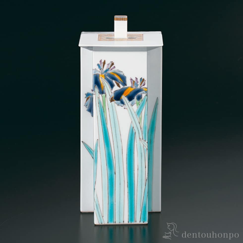 香炉 花菖蒲 ( 木箱名入れ有料 お香 線香 リラックス 仏具 人気 九谷焼 周年 創立 上場 竣工 上場 竣工 開店 事務所移転 開業 プレゼント お祝い お返し )
