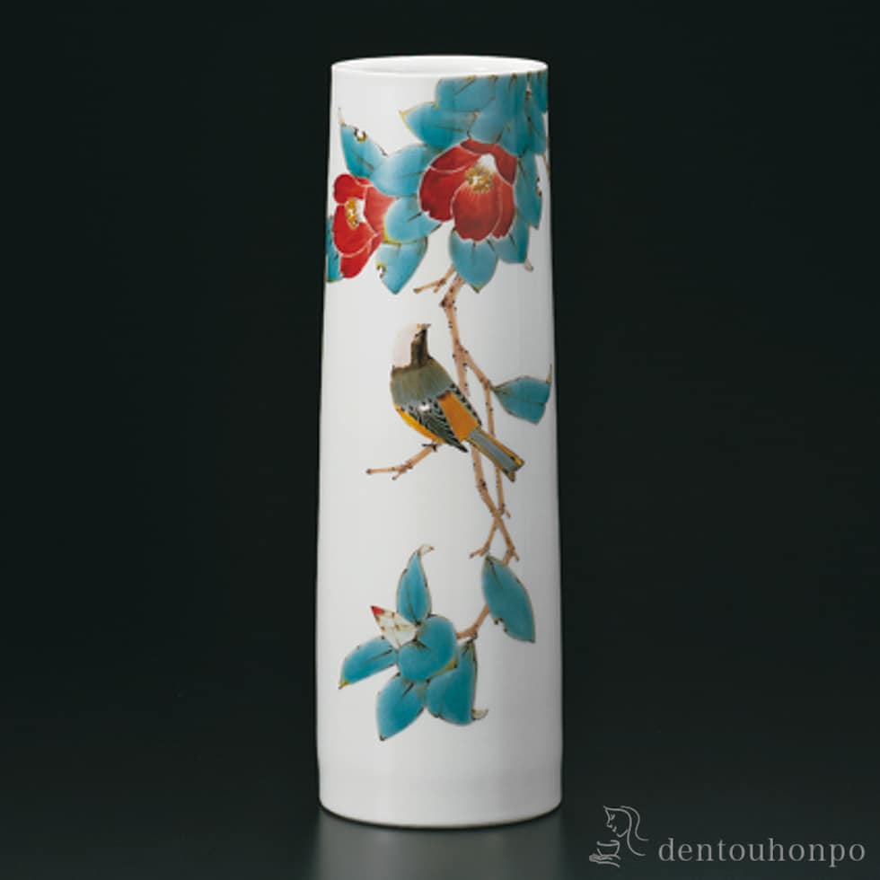 花瓶 椿に尉鶴 9号 ( 木箱名入れ有料 木札名入れ有料 ガラス フラワーベース 花器 一輪挿し おすすめ 九谷焼 周年 創立 上場 竣工 開店 事務所移転 開業 )