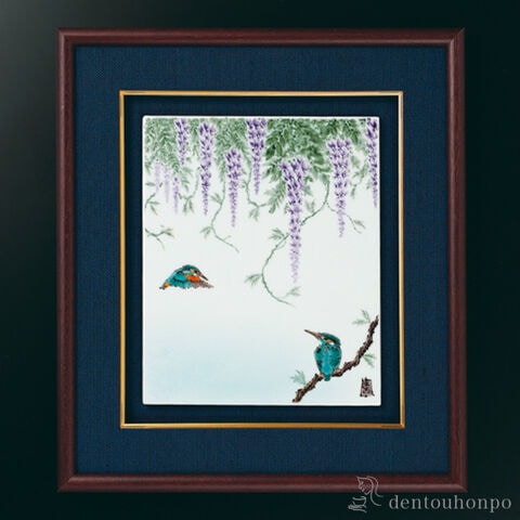 陶額 藤にかわせみ ( 置物 額飾り 陶板 陶板画 法人 九谷焼 周年 創立 上場 竣工 開店 事務所移転 開業 プレゼント お祝い お返し お礼 令和 海外 )
