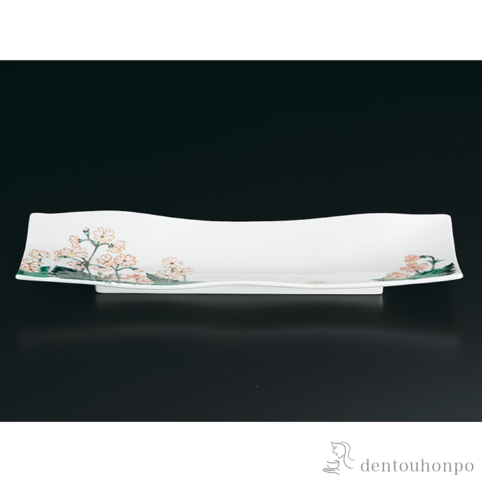 【九谷焼】 長角波皿 さくら草