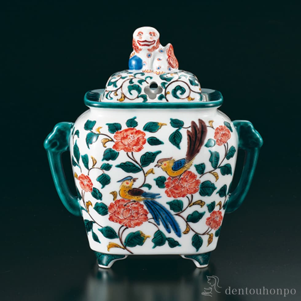 香炉 色絵花鳥絵変図 ( 木箱名入れ有料 お香 線香 リラックス 仏具 人気 九谷焼 周年 創立 上場 竣工 上場 竣工 開店 事務所移転 開業 プレゼント )