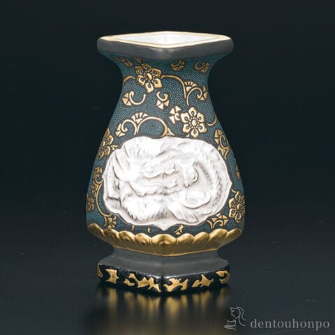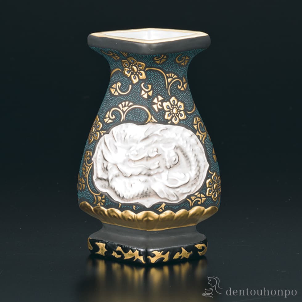 【九谷焼】 花入 盛金唐草文青粒龍鳳凰図
