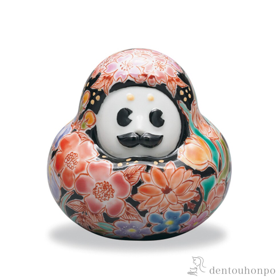 九谷焼置物 ひゃくまんさん 黒地花詰 ( 木札名入れ有料 置物 幸運 風水 縁起物 人気 九谷焼 結婚 出産 内祝い 引き出物 金婚式 誕生日プレゼント 還暦祝い )
