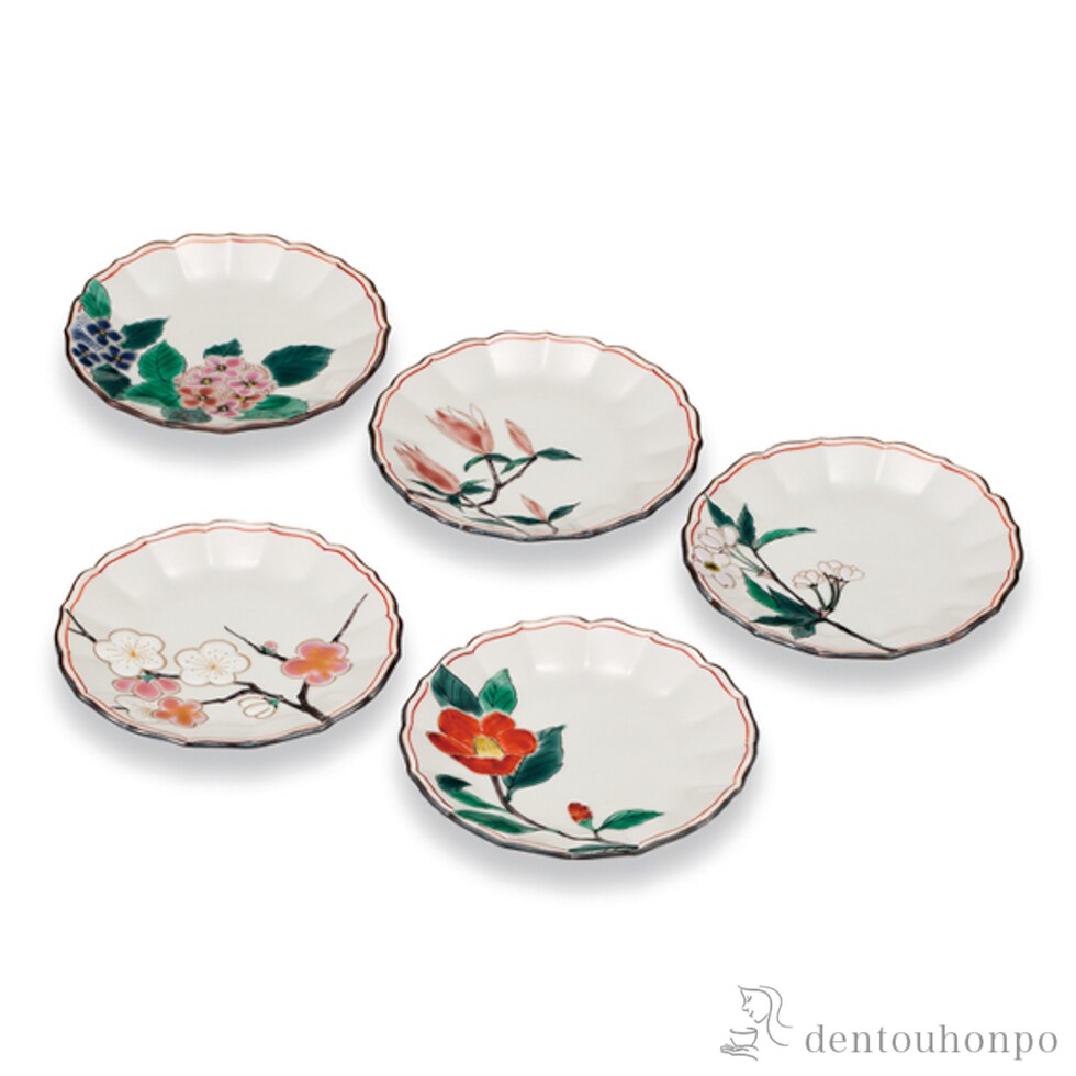 皿揃 絵変り四季の花 3号 5枚セット ( 和食器セット お皿 揃える 食器 和食 九谷焼 結婚 出産 内祝い 引き出物 金婚式 誕生日プレゼント 還暦祝い 古希 喜寿 )