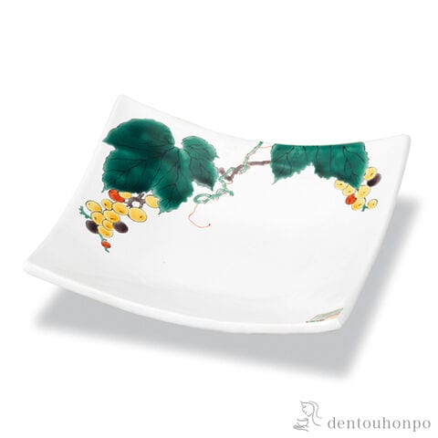 【九谷焼】 角皿 ぶどう