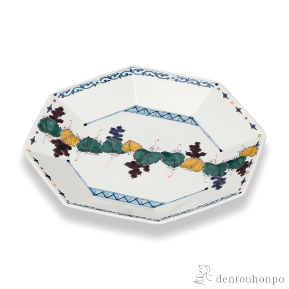 8角皿 葡萄文 8号 ( プレート 醤油皿 豆皿 和食 洋食 九谷焼 結婚 出産 内祝い 引き出物 金婚式 誕生日プレゼント 還暦祝い 古希 喜寿 米寿 退職 定年 )