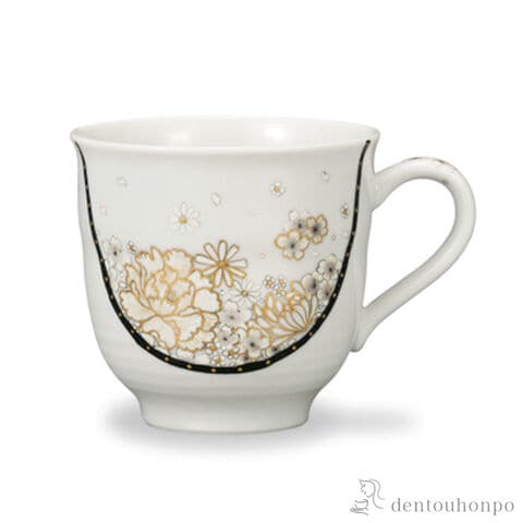 マグカップ 本金墨花詰 白 ( プレゼント デザイン マグ オリジナル タンブラー 九谷焼 結婚 出産 内祝い 引き出物 金婚式 誕生日プレゼント 還暦祝い 古希 )