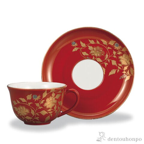 【九谷焼】 コーヒーカップ&ソーサー 金襴手 赤