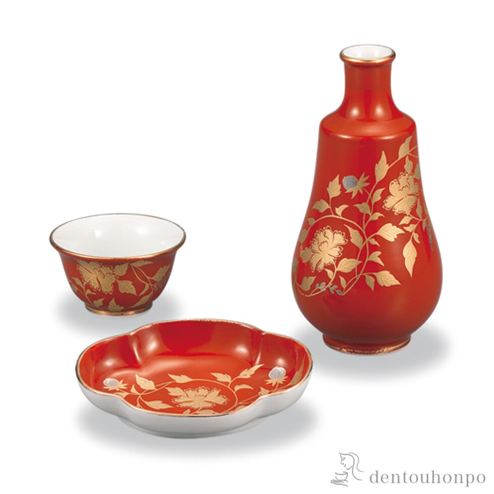 ちょい飲みセット 金襴手 赤 ( 酒器 日本酒 冷酒 プレゼント 人気 九谷焼 結婚 出産 内祝い 引き出物 金婚式 誕生日プレゼント 還暦祝い 古希 喜寿 米寿 )