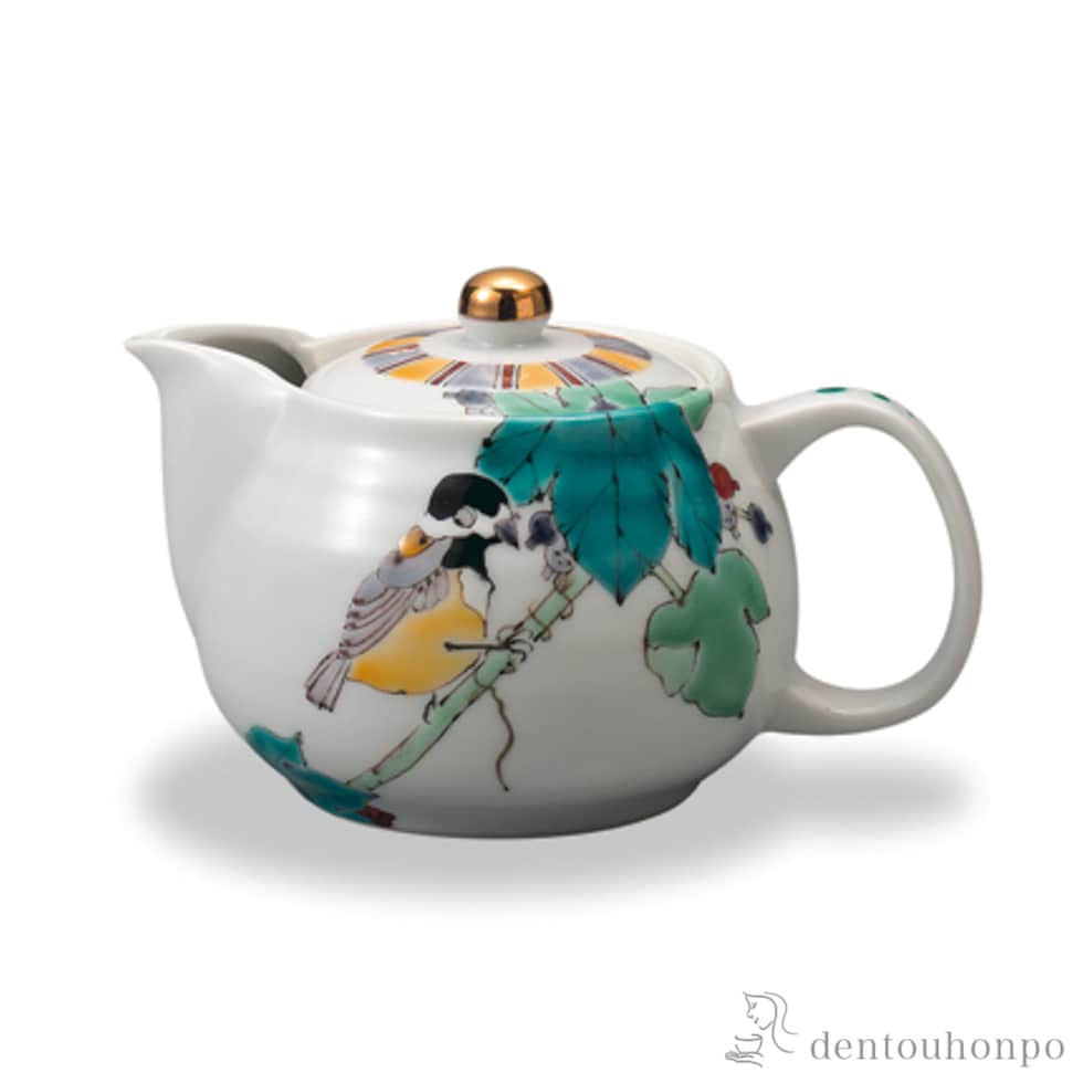 ポット急須 野葡萄に山雀 茶こし付 ( ティーポット お茶 煎茶 日本茶 おすすめ 九谷焼 結婚 出産 内祝い 引き出物 金婚式 誕生日プレゼント 還暦祝い 古希 )