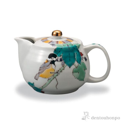 【九谷焼】 ポット急須 野葡萄に山雀 茶こし付