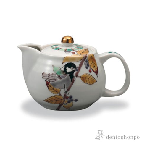 【九谷焼】 ポット急須 紫式部に四十雀 茶こし付