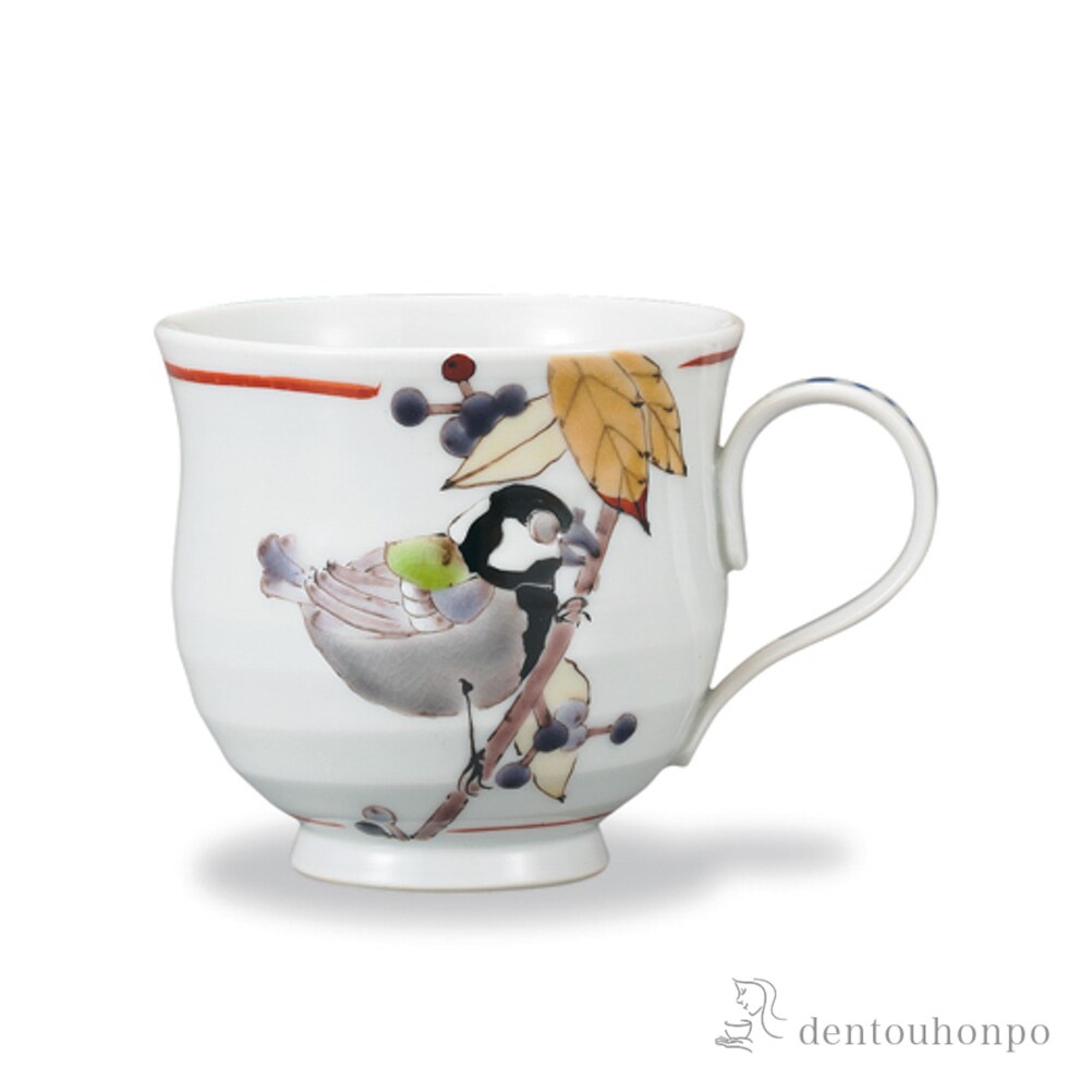 【九谷焼】 マグカップ 紫式部に四十雀