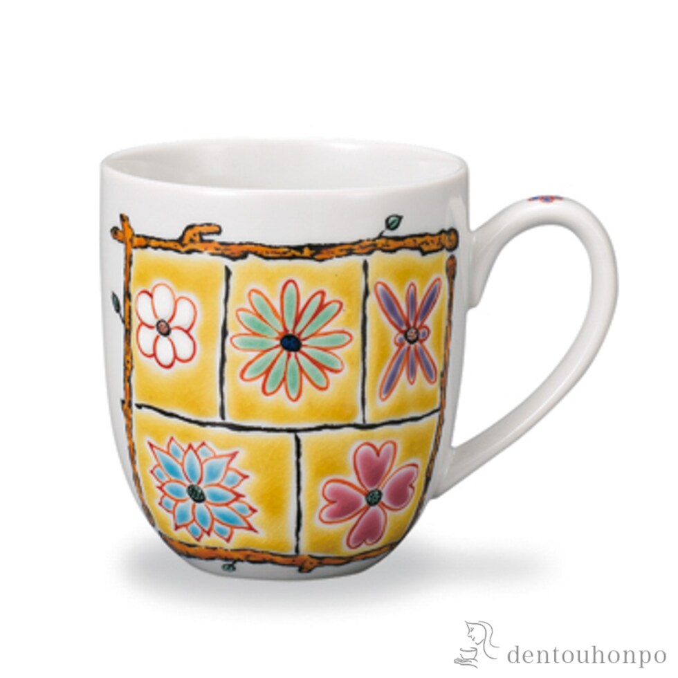 【九谷焼】 マグカップ フラワーBOX イエロー