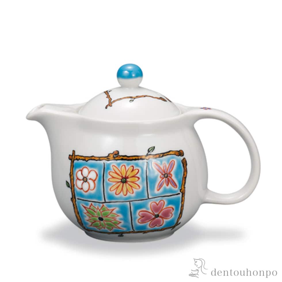 ポット急須 フラワーBOX ライトブルー 茶こし付 ( ティーポット お茶 煎茶 日本茶 おすすめ 九谷焼 結婚 出産 内祝い 引き出物 金婚式 誕生日プレゼント )
