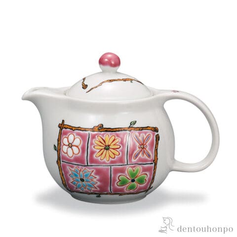 ポット急須 フラワーBOX ピンク 茶こし付 ( ティーポット お茶 煎茶 日本茶 おすすめ 九谷焼 結婚 出産 内祝い 引き出物 金婚式 誕生日プレゼント )