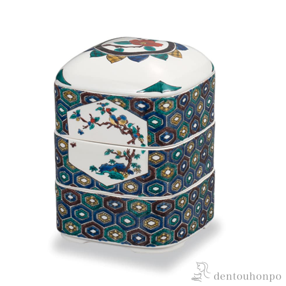 【九谷焼】 三段重 古久谷画風