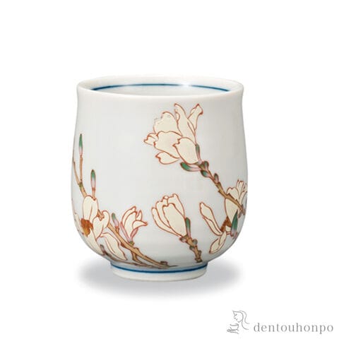湯呑 12か月の花 辛夷(3月) ( 湯のみ ゆのみ 湯飲み カップ プレゼント 九谷焼 結婚 出産 内祝い 引き出物 金婚式 誕生日プレゼント 還暦祝い 古希 喜寿 )