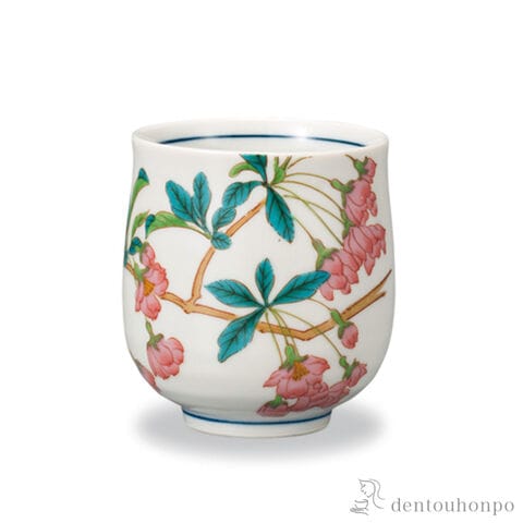 【九谷焼】 湯呑 12か月の花 花海棠(4月)