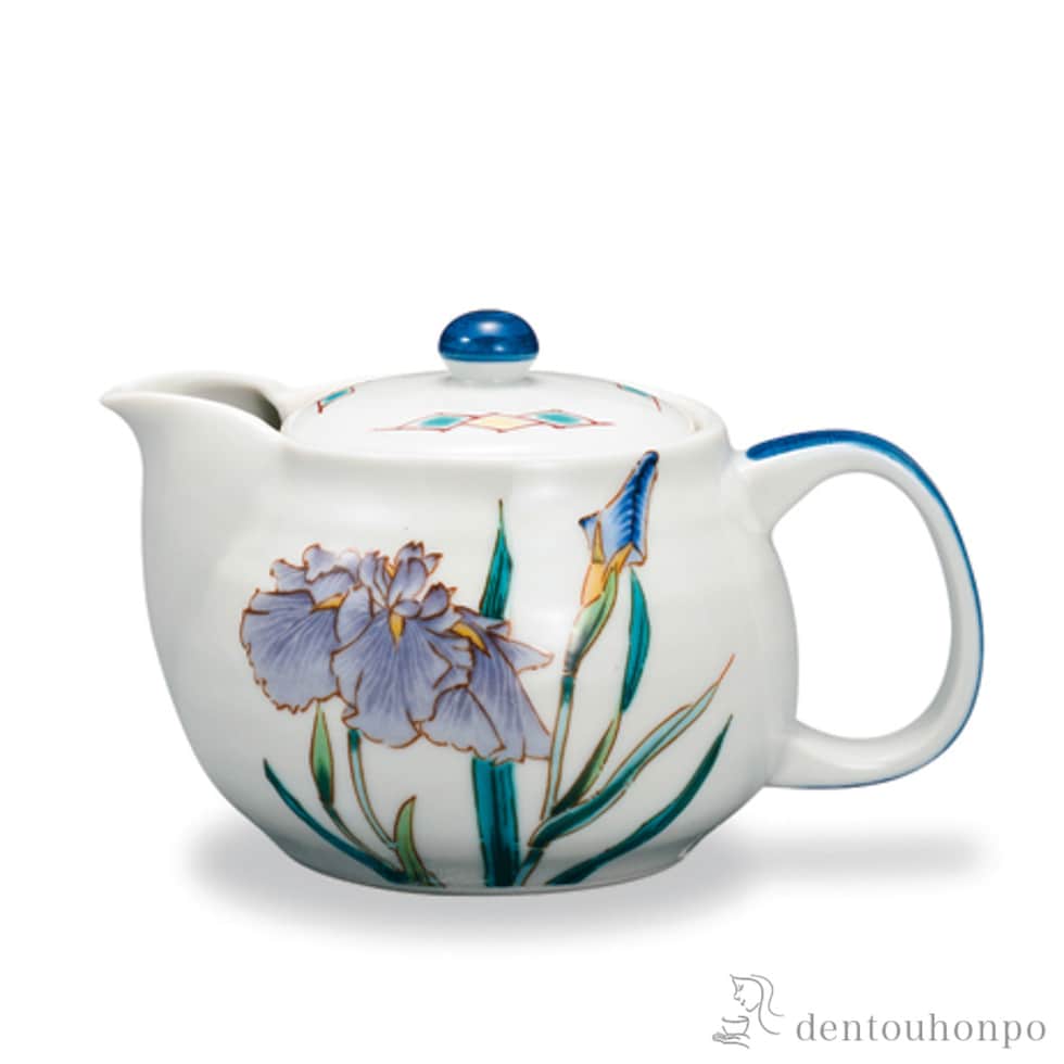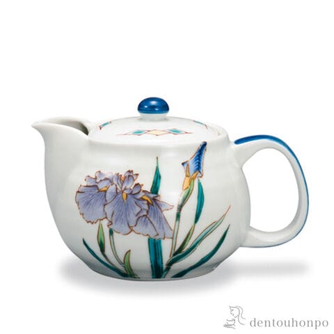 【九谷焼】 ポット急須 12か月の花 花菖蒲(5月) 茶こし付