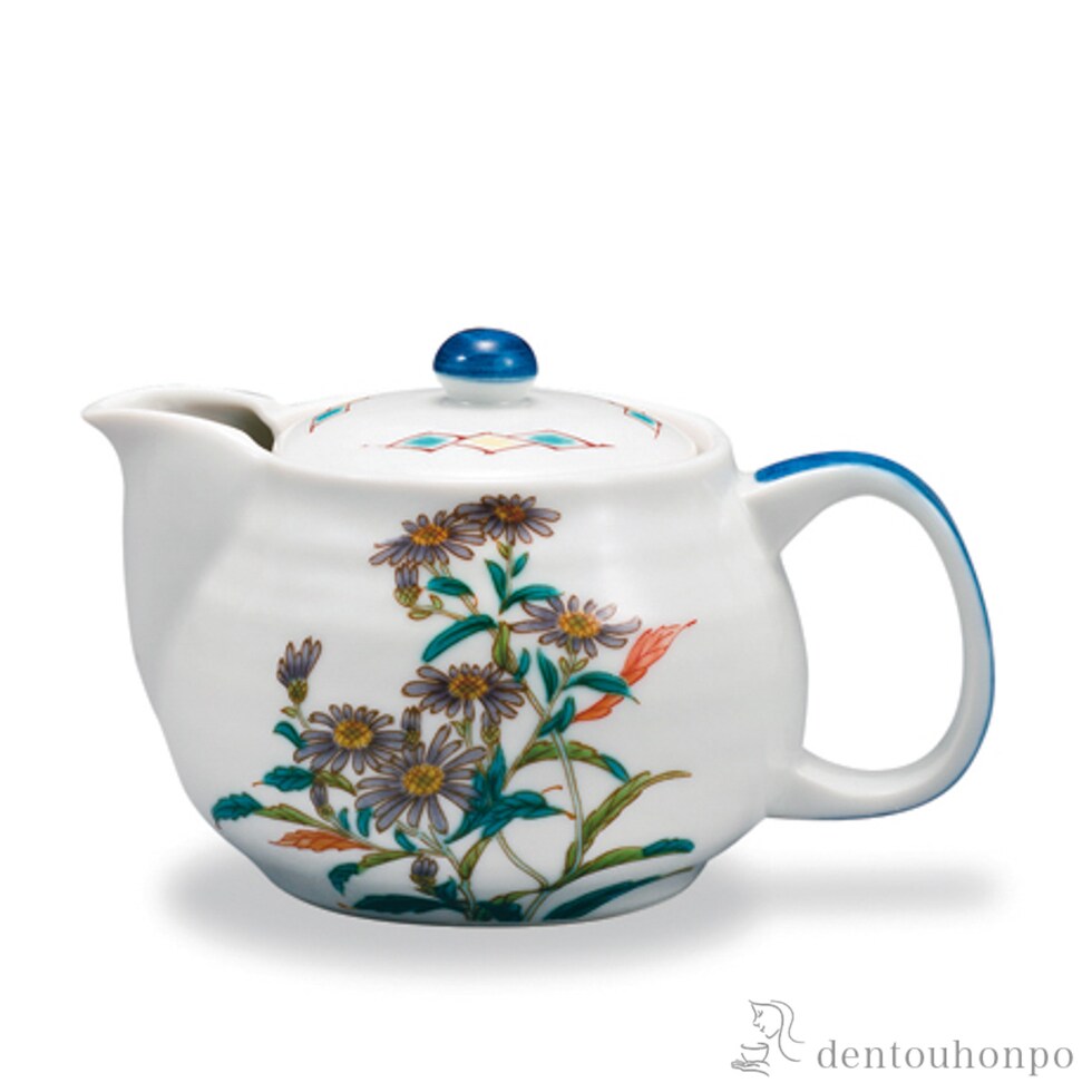 ポット急須 12か月の花 紫苑(11月) 茶こし付 ( ティーポット お茶 煎茶 日本茶 おすすめ 九谷焼 結婚 出産 内祝い 引き出物 金婚式 )