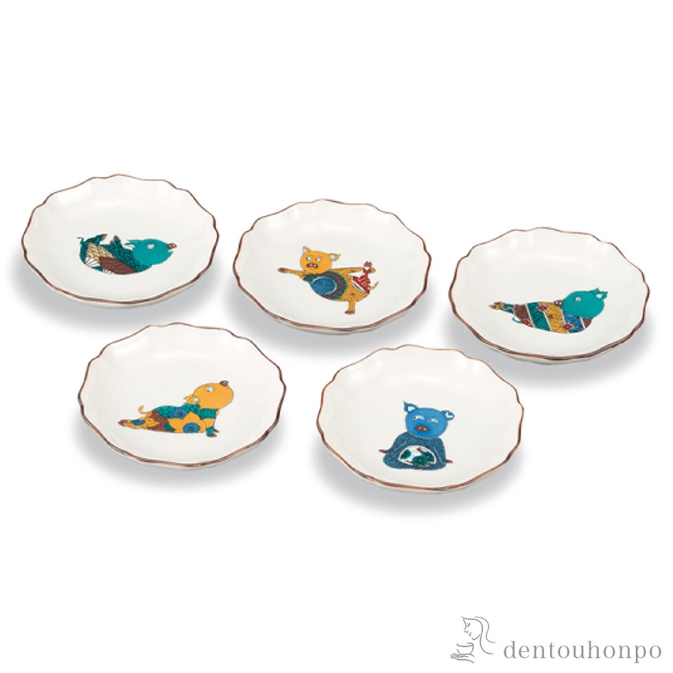 【九谷焼】 皿揃 アニマルヨギー 3.5号 5枚セット
