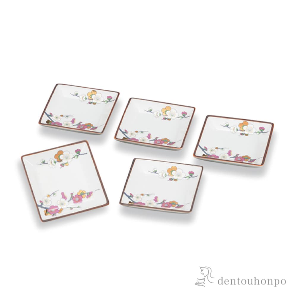 皿揃 紅梅 3号 5枚セット ( 和食器セット お皿 揃える 食器 和食 九谷焼 結婚 出産 内祝い 引き出物 金婚式 誕生日プレゼント 還暦祝い 古希 喜寿 米寿 退職 )