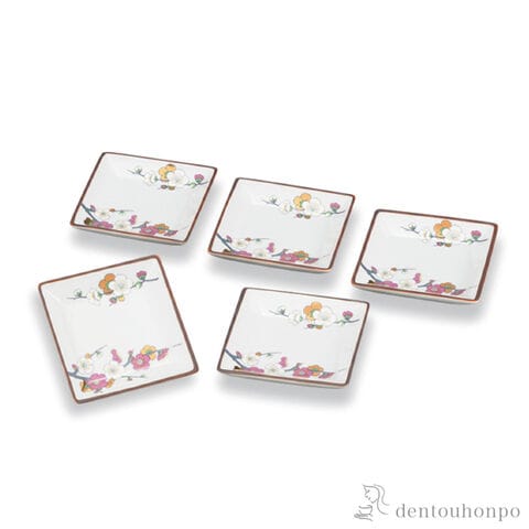 【九谷焼】 皿揃 紅梅 3号 5枚セット