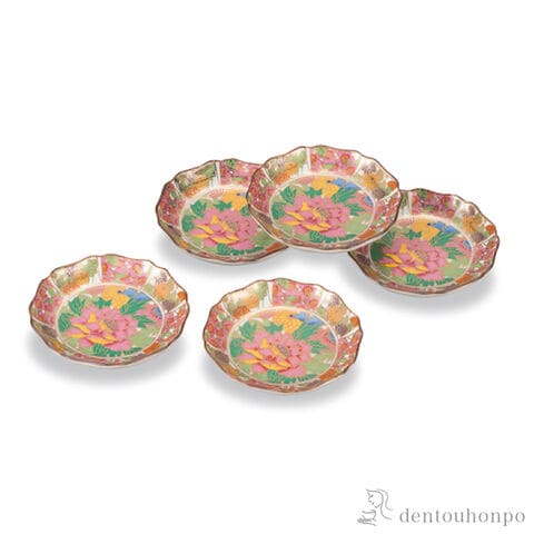 【九谷焼】 皿揃 花詰 3.5号 5枚セット