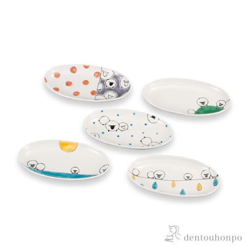 【九谷焼】 皿揃 ひつじ絵変わり 4.5号 5枚セット