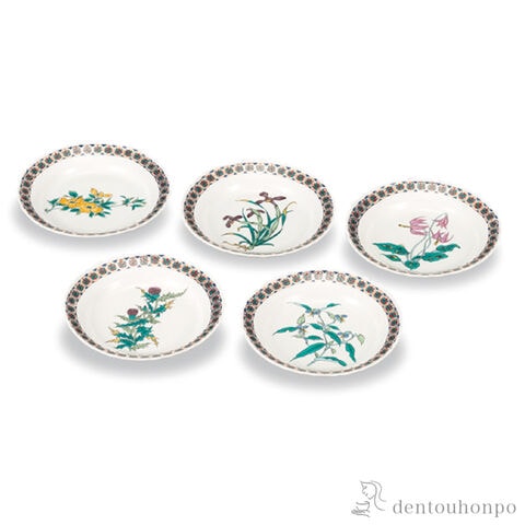 【九谷焼】 皿揃 金小紋草花絵変わり 5.5号 5枚セット