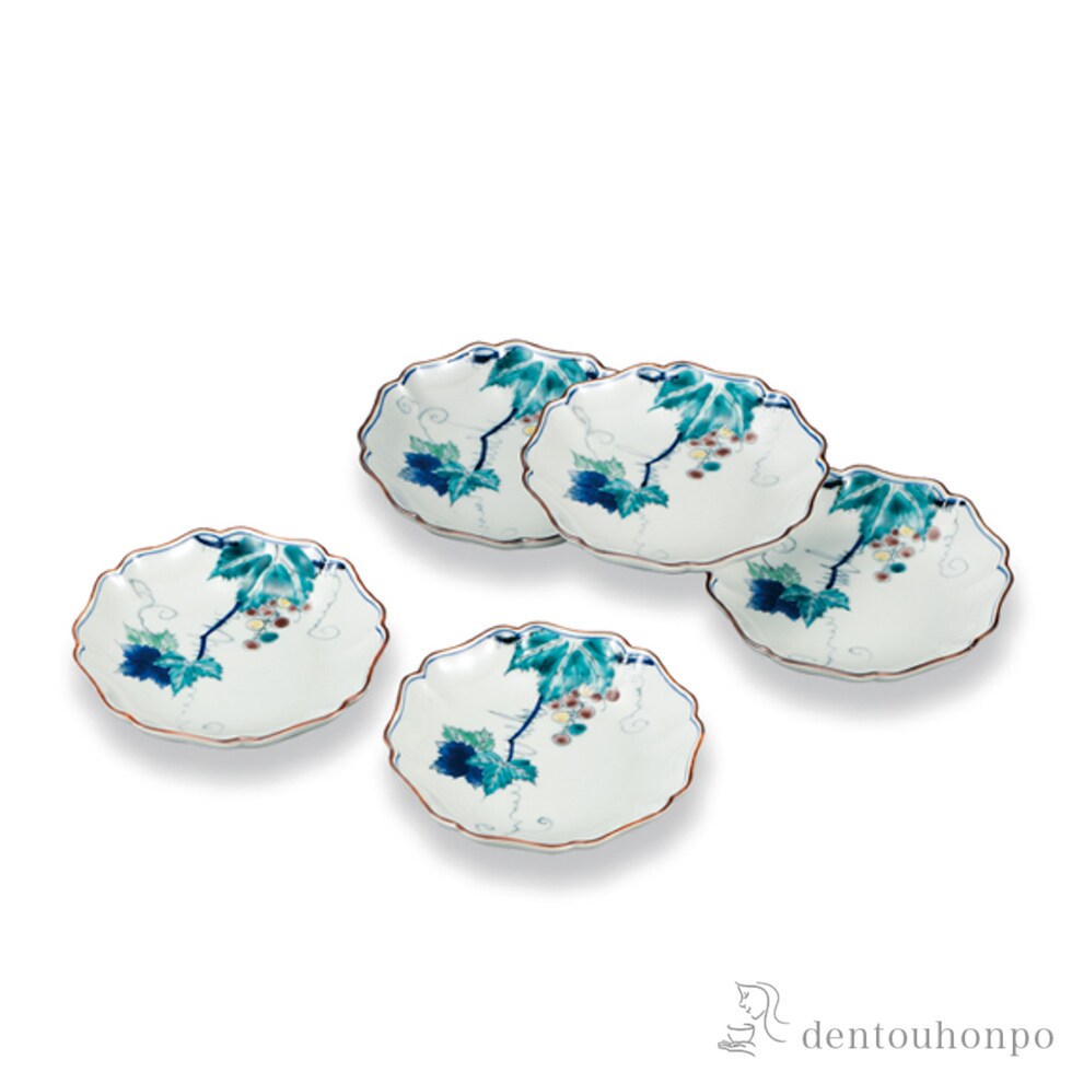 皿揃 染付ぶどう 4.3号 5枚セット ( 和食器セット お皿 揃える 食器 和食 九谷焼 結婚 出産 内祝い 引き出物 金婚式 誕生日プレゼント 還暦祝い 古希 喜寿 )