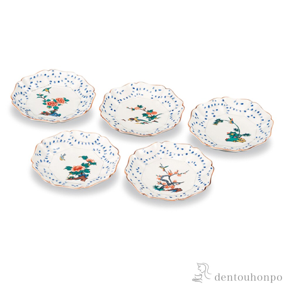 皿揃 花鳥絵変わり 5.5号 5枚セット ( 和食器セット お皿 揃える 食器 和食 九谷焼 結婚 出産 内祝い 引き出物 金婚式 誕生日プレゼント 還暦祝い 古希 喜寿 )